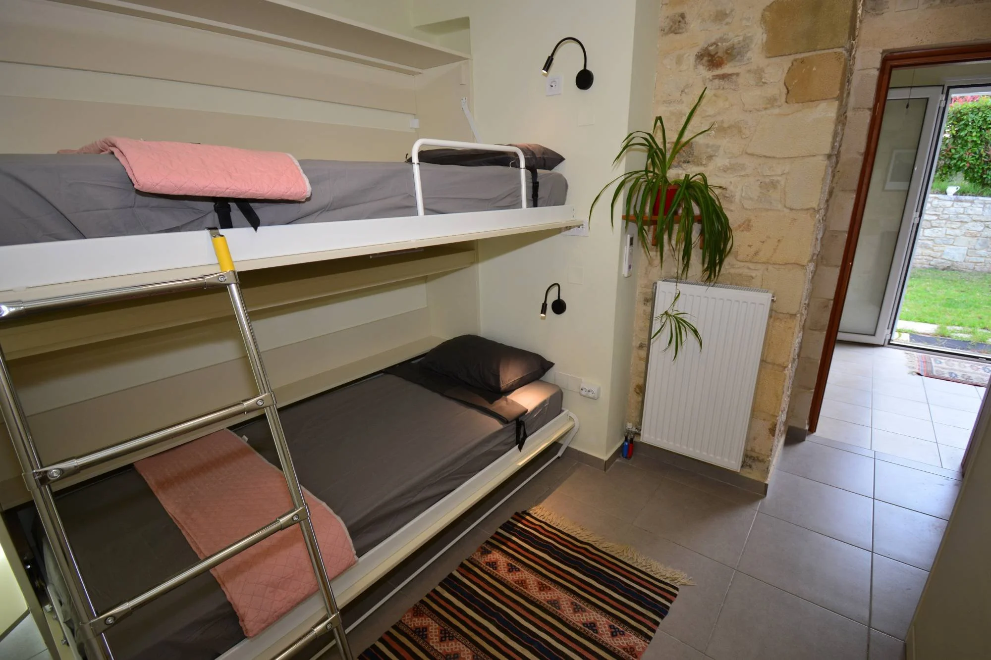 Sleeps up to four in single bedding, or can be configured with queen bedding for couples. Charming room with stone features, but no view. Discounted and perfect for up to four friends, or private occupancy for either a lone participant or couple, and all at a great price.